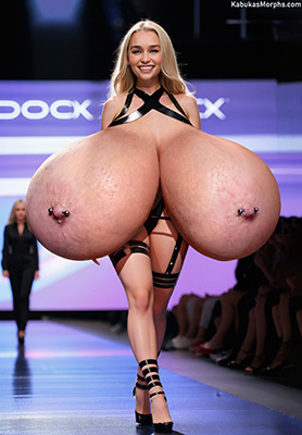 Check out these morph samples of GOT actress Emilia Clarke exposing her giant tits out on the runway.