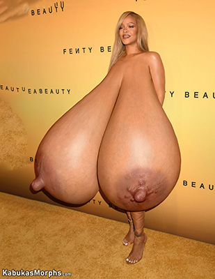 Check out these morph samples of black beauty Rihanna naked and mega busty exposing her huge tits out in public.
