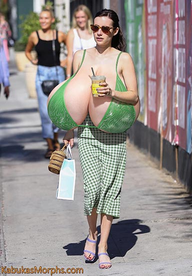 Breasts expansion morph samples of cute redhead Emma Stone flopping her giant naked tits out in public.