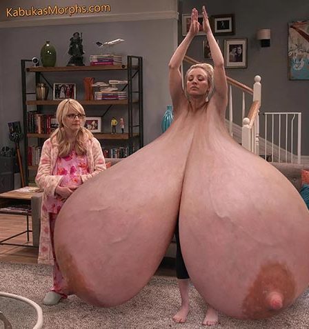 Breasts expansion morph samples of hot babe Kaley Cuoco from The Big Bang Theory.