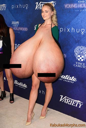 Breasts expansion morph samples of hot girl Sophie Turner exposing her giant boobs out in public.