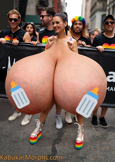 Breasts expansion morph samples of hot babe Natalie Portman exposing her huge saggy breasts out in public.