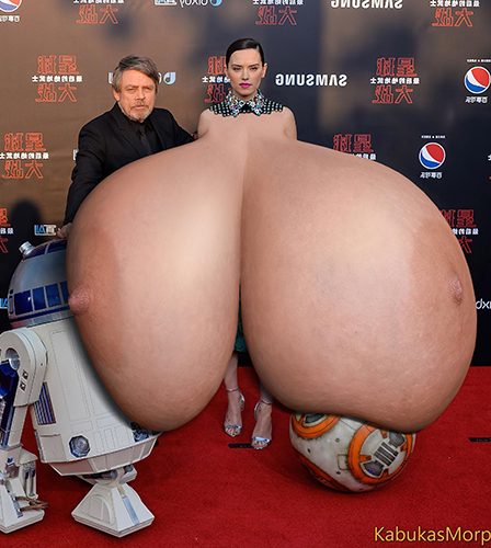 Breasts expansion morph samples of actress Daisy Ridley flopping her giant tits and cock in public.