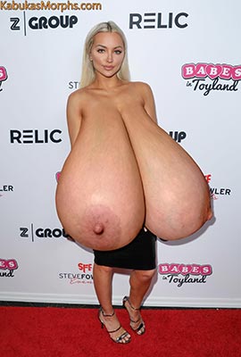 Breasts expansion morph samples of hot babe Sabrina Lynn exposing her big huge tit topless.