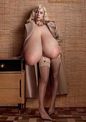 New breasts expansion morph samples of singer Billie Eilish in sexy lingerie exposing her huge meaty boobs.