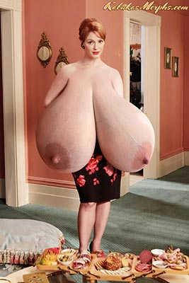 Breasts expansion morph samples of Christina Hendricks flopping out her big tits on Mad Men.