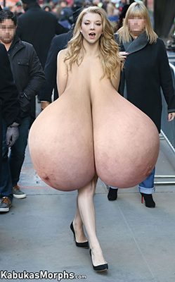 Natalie D. naked on the streets swinging her massive pendulous tits.